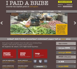 One was http://www.ipaidabribe.com/, an initiative by Janaagraha and, as the name makes it amply clear, it asks people to report a bribe they have paid or have been sought.