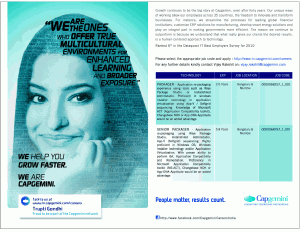 This week’s Ascent (career…nay, jobs supplement of The Times of India) had a large’ish ad. by Capgemini India. The ad. is standard stuff – we grow, you grow, multicultural blah, broader exposure and more blah.