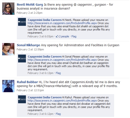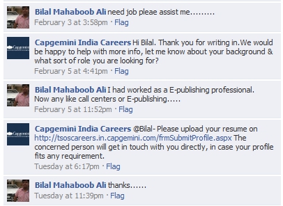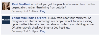 As is the new trend (See previous efforts from IBM Daksh and Aricent), this one too had a social network link beyond standard URL and email ID. No, not one on LinkedIn as I may have wanted/guessed, but one on Facebook. I went to it with some skepticism, but was pleasantly surprised by the way it was being managed.
