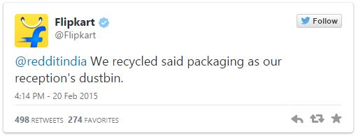 Some over-enthusiastic person at Flipkart, manning their Twitter handle couldn’t let go of the opportunity and offered this retort.
