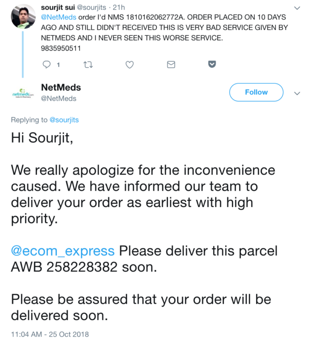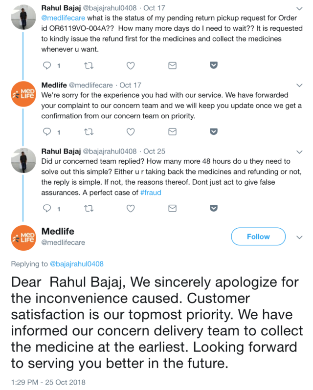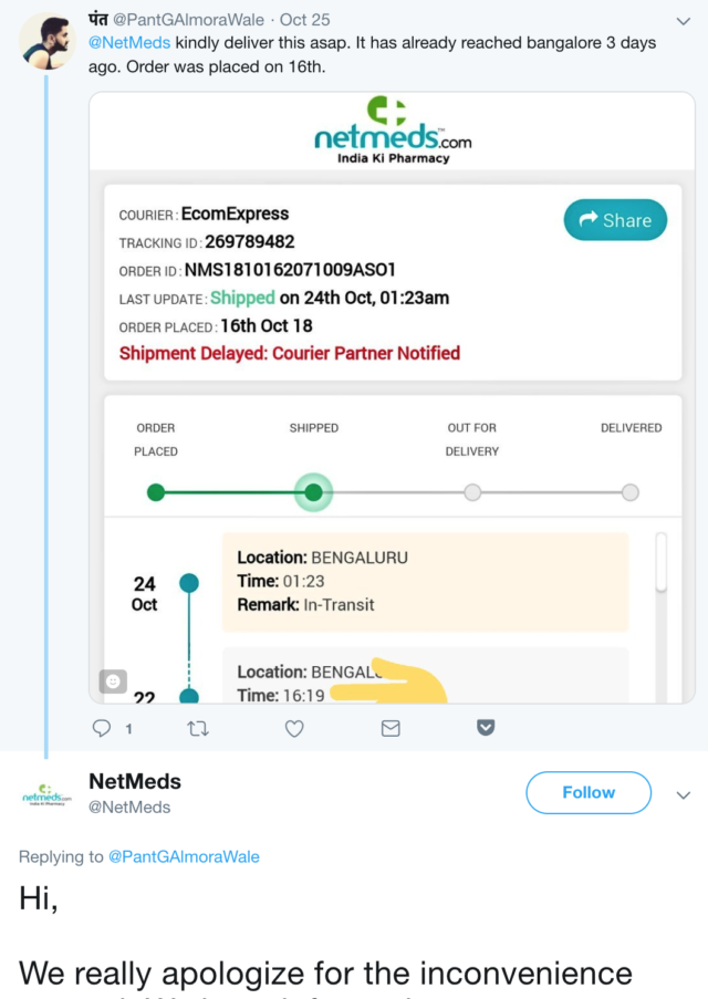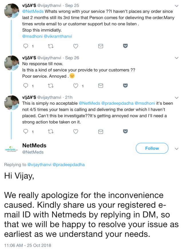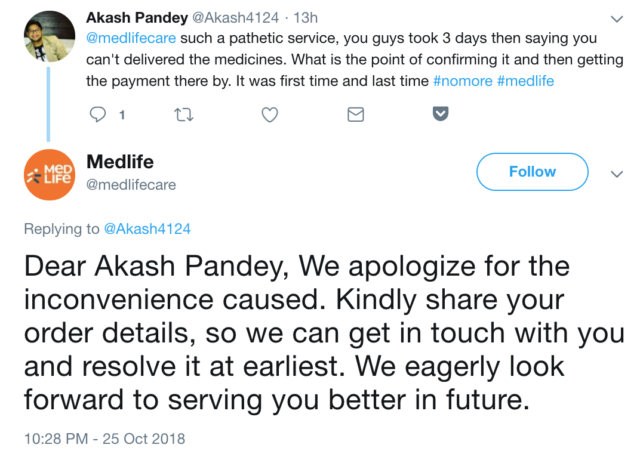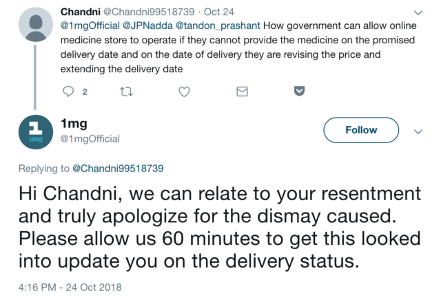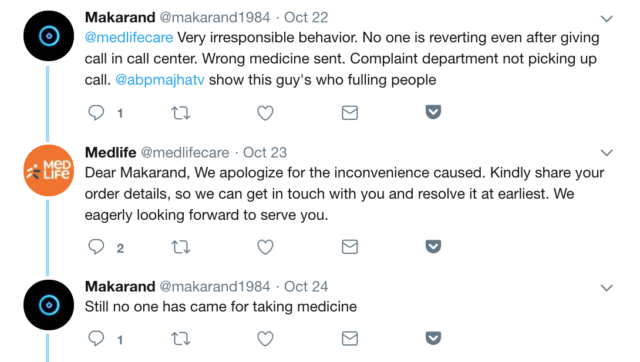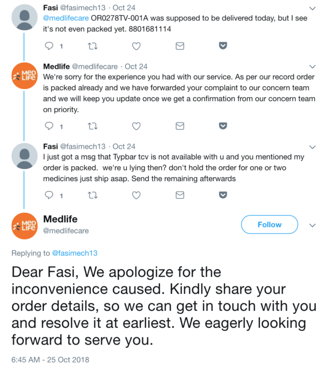 The last factor (among many others like payment, tracking etc. that I don’t intend to focus on because I’m not buying anything at this point) in user experience is the delivery. As a sample set, take a look at the ‘tweet and replies’ section on the Twitter handles of the brands.