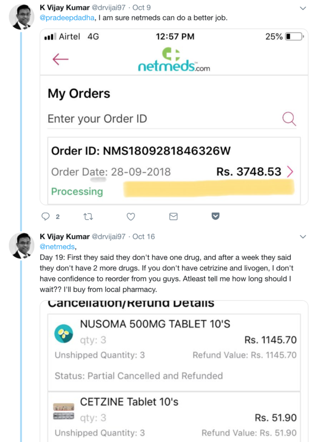 The blood-bath there is no different from what Amazon or Flipkart go through. There are delayed orders, severely delayed orders, canceled orders, refunds given against canceled orders for which customers are cursing the brands since these are medicines being ordered, not items that one can live without, there are allegations of reduced quantity, wrong brands delivered etc. This is standard for any online category and one that aggregates from multiple brands and retailers.