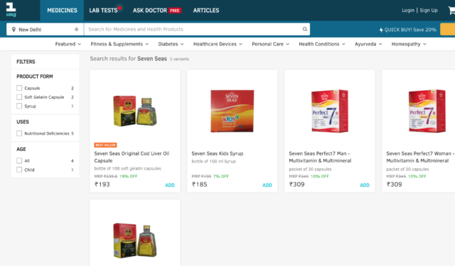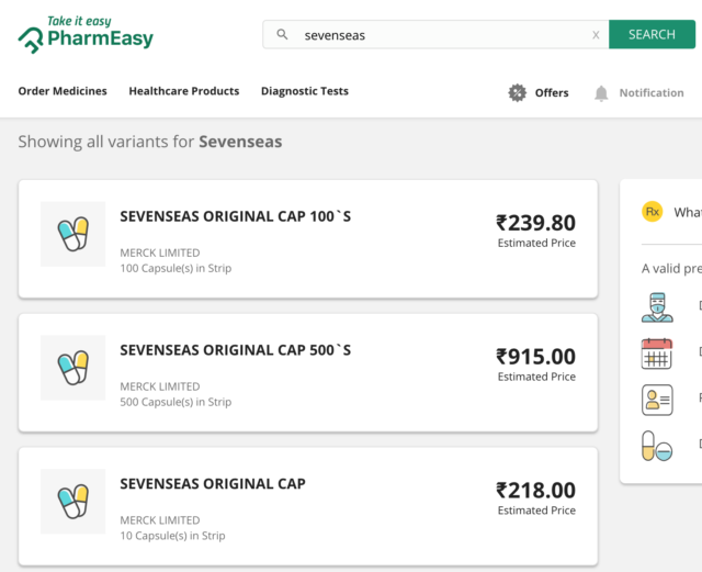 The second factor in user experience is search and the UI. Medlife is app-only and there’s no way to order on the desktop. PharmEasy, Netmeds and 1MG offer desktop purchase too, to name just 3 among the many other online pharma brands. I do not have any prescriptions right now to upload and check the search feature, but I tried some over-the-counter stuff that generally does not require prescriptions, just to use the search feature. The result was interesting.