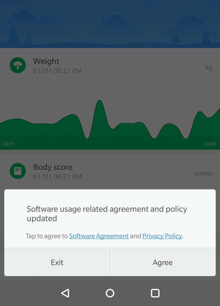 Interestingly, since I use a Xiaomi weigh scale, when I recently opened the app, it prompted me with an updated Software usage related agreement and policy.