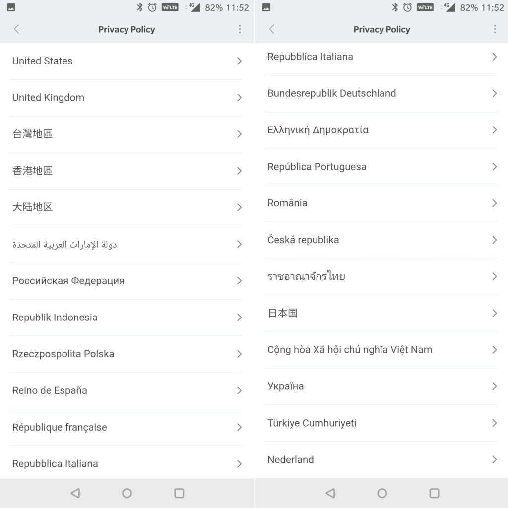 I first thought these are only language translations of the policy, not country-specific. But that wouldn’t explain why there are 2 different versions in English, one each for UK and US.
