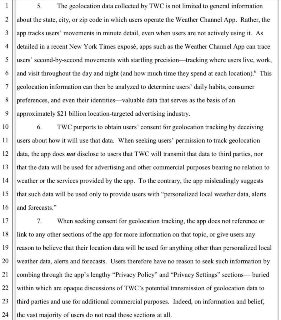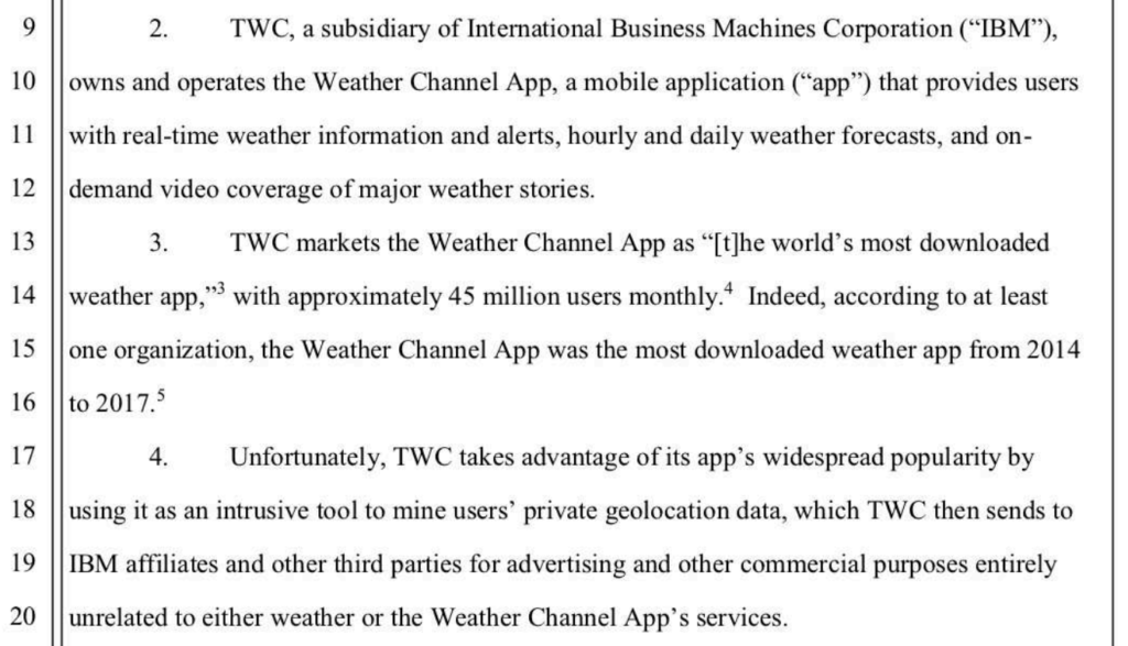 I stumbled on the news of the city of Los Angeles suing IBM-owned The Weather Channel of covertly mining user data.