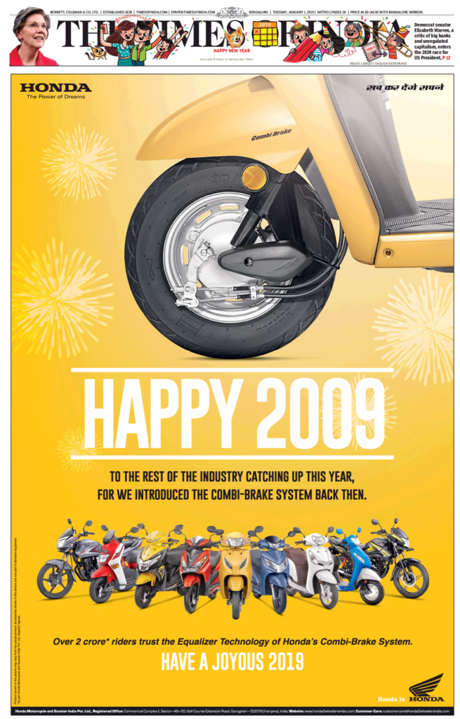 Honda ad was from The Times of India, January 1, 2019. The Hyundai CRDi ad is courtesy Sanjeev Shukla (who was with the marketing team of Hyundai India when the 2002