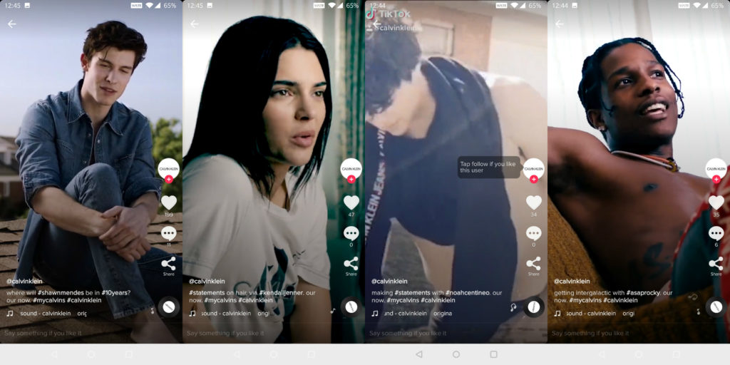 Calvin Klein is using its big-ticket celebrities like Shawn Mendes, the Grammy nominated singer-songwriter, actor Noah Centineo, model Kendall Jenner and musician A$AP Rocky for their short videos. Same old content, yet another social media platform. Crux is, fish where the fish are!