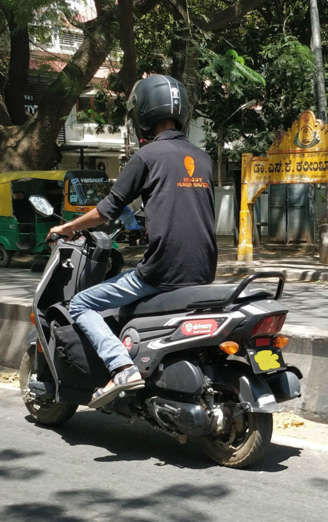 A Swiggy delivery person, on a Drivezy bike!