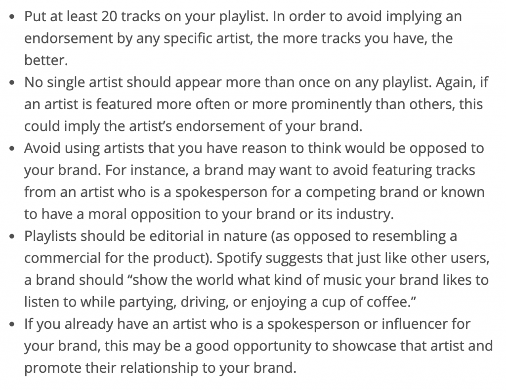 Other brands that have been using Spotify playlists probably have that connection far easier.
