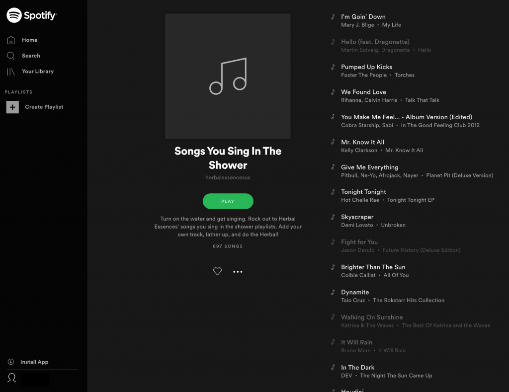 A funny playlist I stumbled upon was by Herbal Essences US. They make hair care products and have a playlists for singing in the shower 🙂 They have made it a public playlists so people can add their choice of songs to sing in the shower!