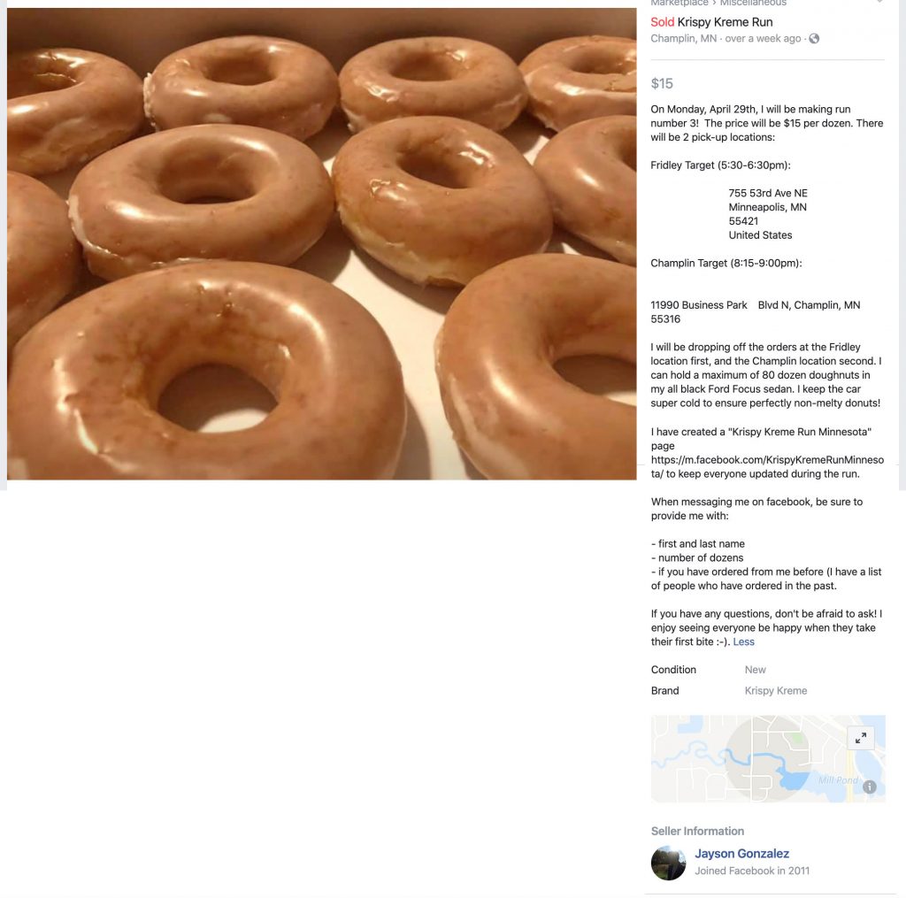 Jayson Gonzalez is a 21-year-old accounting student of Metropolitan State University in Minnesota. Earlier this year, when he was in Clive, Iowa for a soccer game, he noticed a Krispy Kreme outlet there, remembered that Minnesota doesn’t have a Krispy Kreme outlet (Krispy Kreme launched in Minnesota in 2002, but 4 years later, they shut all their outlets) and asked on Facebook Marketplace if someone, back in Minnesota wanted donuts from Krispy Kreme.
