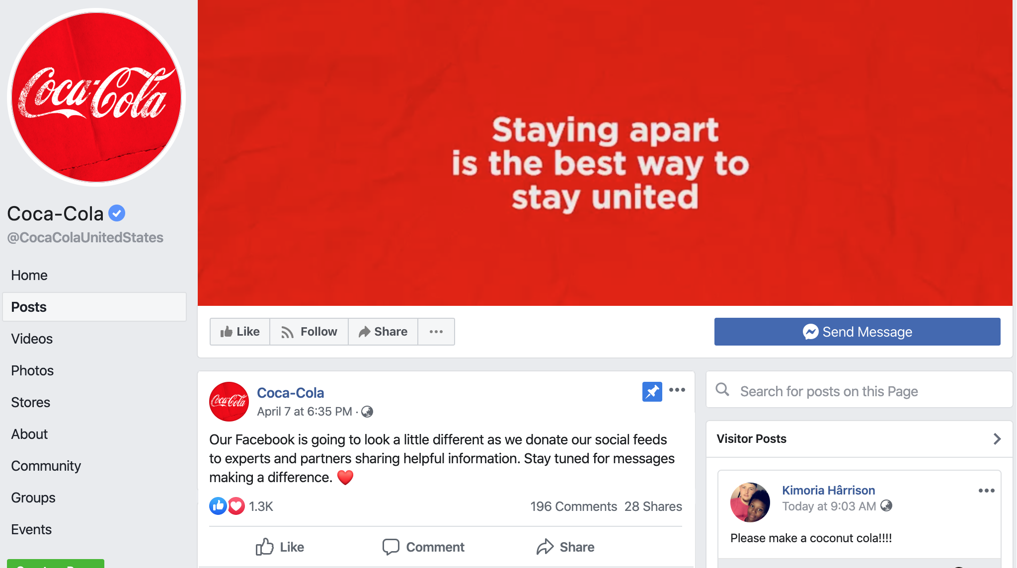 What is Coca-Cola doing during this pandemic and the lockdown?