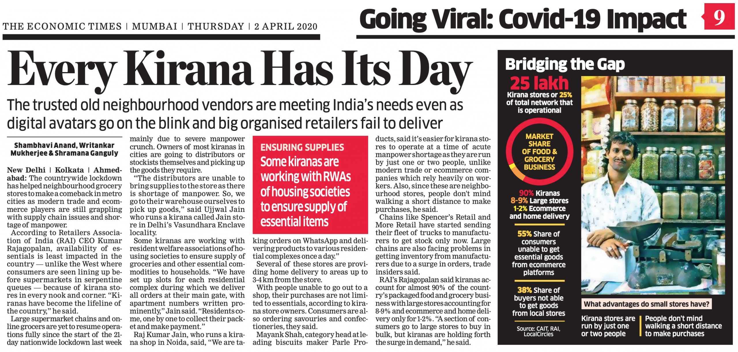 And this is particularly useful during the times we are in – you can head out to your nearby kirana store only upon getting that alert from iD that fresh stock has arrived. Given the overall shortage of food (because state borders are closed) and the struggle by big-ticket e-commerce brands in managing the enormous surge of interest in online order and delivery, kirana groceries have become the lifeline for many people in India. Several media outlets have written about this extensively (see below).