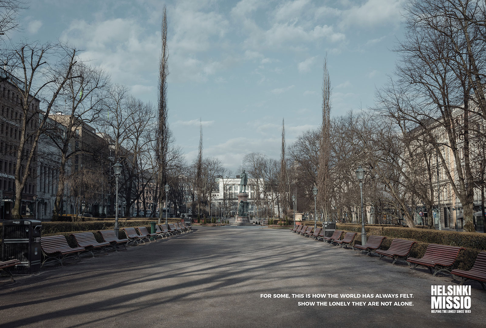 Another impressive effort on the same lines is from the Finnish NGO HelsinkiMissio. Their agency, TBWA\Helsinki, using stark footage of empty public spaces to make an impactful point: “For some, this is how the world has always felt. Show the lonely they are not alone”. Brilliant thought!