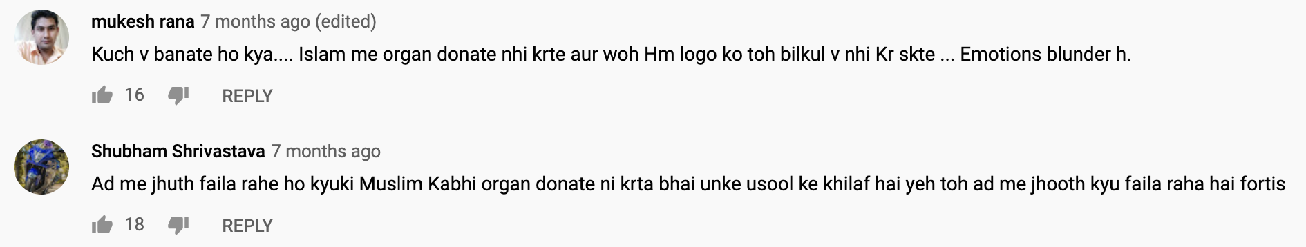 The donor’s family is shown to us as obviously Muslim, but the recipient’s family’s religious identity is not clearly denoted. Observe the wife not wearing a bindi, for instance. There are no markers to conclude that they belong to a particular religion. And this is important for the payoff in the end.