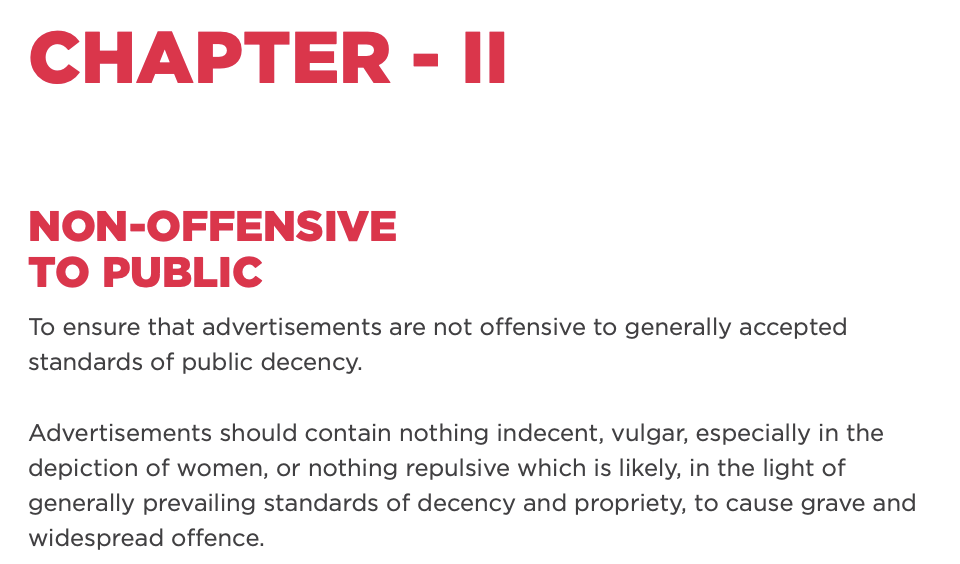 ASCI’s 2nd code, ‘non-offensive to public’ is this: