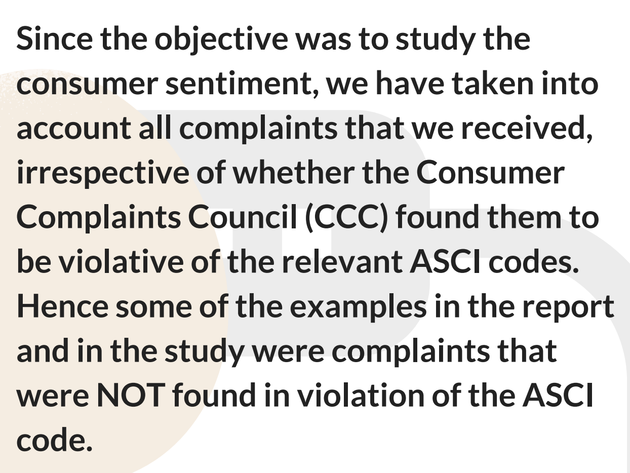 But if a complaint has not been upheld by ASCI, how useful is it to add in a report? Of course, the last page of the report explains the purpose of the report: “What this report tries to put a spotlight on, are some observations and insights that could help advertisers plan their campaigns better, or help them respond better to consumer sentiments”.