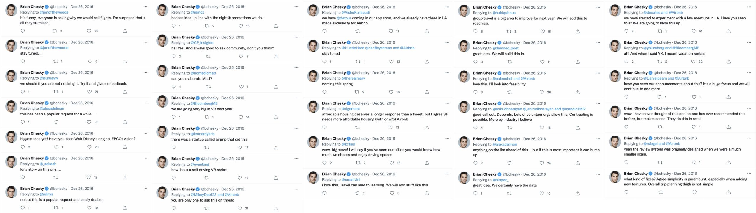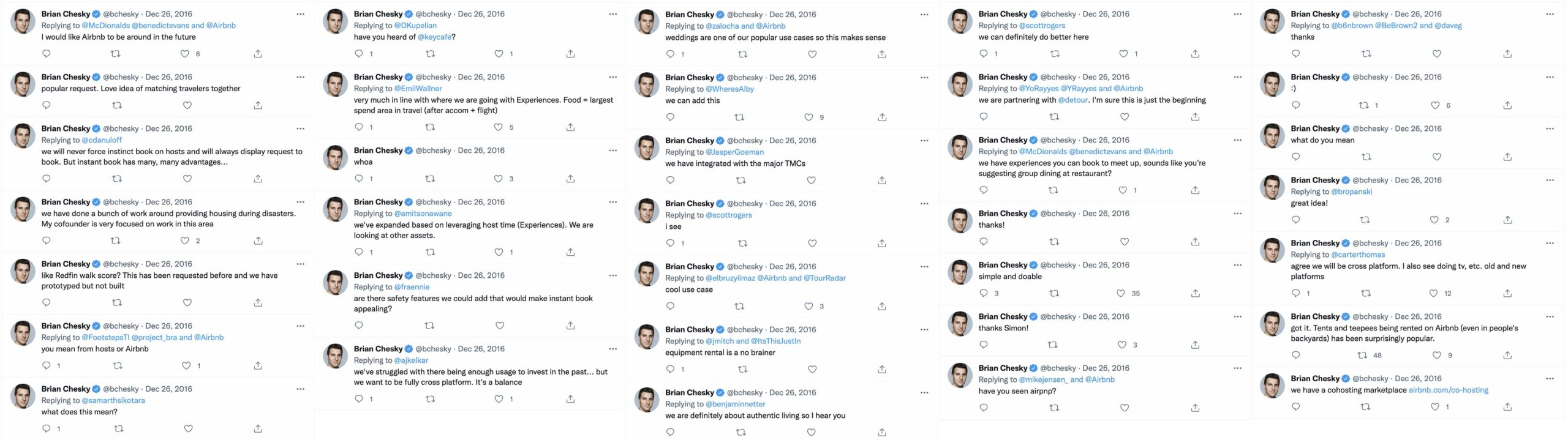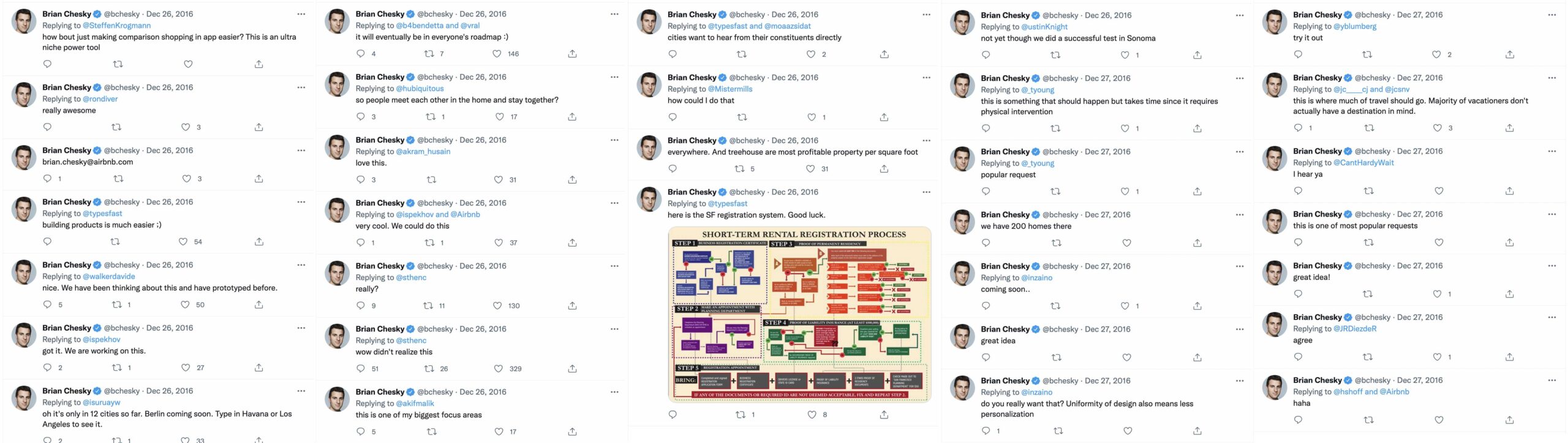 Brian did that first in December 2016, a day after Christmas, and started with a simple question: “If @Airbnb could launch anything in 2017, what would it be?”.